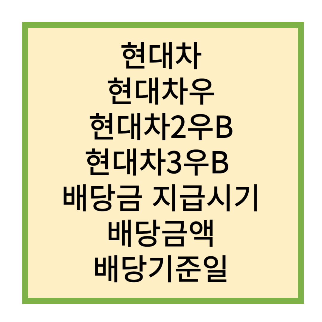 1. 현대차, 현대차우, 현대차2우B, 현대차3우B 배당금지급일, 배당금액, 24년 지급시기