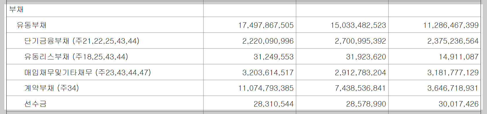 한국조선해양의 사업보고서, 연결재무상태표를 보면 자산과 부채항목에 계약자산과, 계약부채항목이 있습니다.